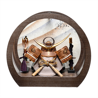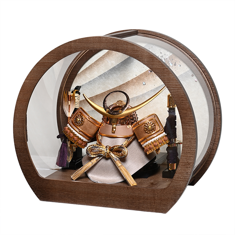 人形の伏見屋 > 五月人形 > 兜・鎧・大将ケース > 6号上杉謙信公之兜ブラウン円型アクリルケース:伏見屋監修