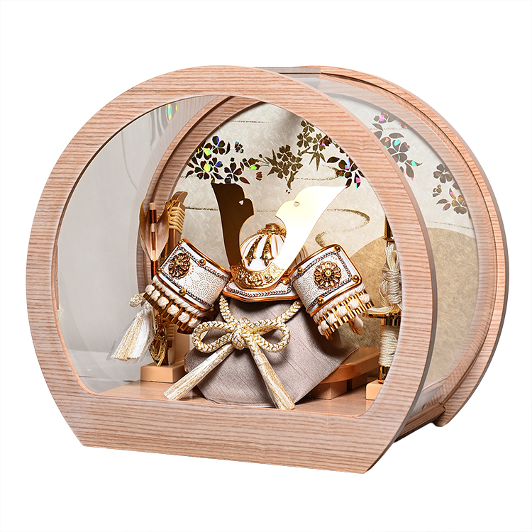 人形の伏見屋 > 五月人形 > 兜・鎧・大将ケース > 6号中鍬形之兜白木円型アクリルケース:伏見屋監修