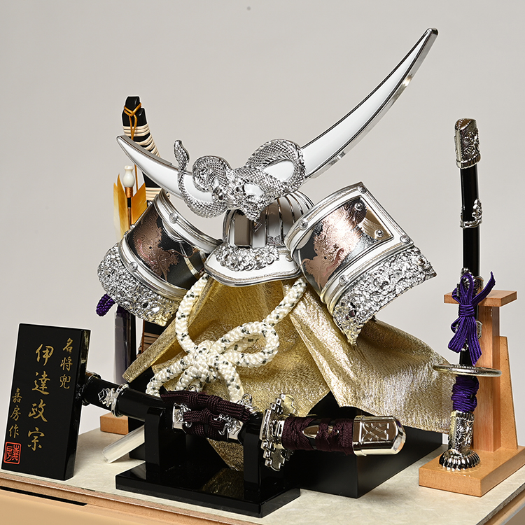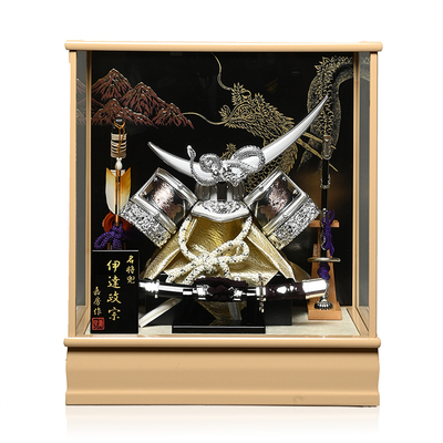 人形の伏見屋 > 五月人形 > 兜・鎧・大将ケース > 8号伊達政宗公兜白木ケース飾:嘉房作