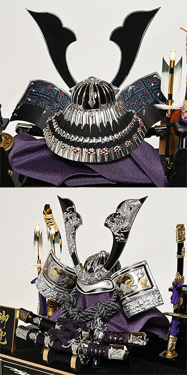 人形の伏見屋 > 五月人形 > 兜・鎧・大将ケース > 9号星日北斗銀兜アクリルパノラマケース:伏見屋監修