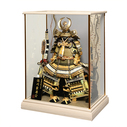 ・織田信長・豊臣秀吉・公の鎧を、今風木目の綺麗なナチュラル白木ケースにセットして、アーバンスタイル鎧ケース飾りに仕上げました。