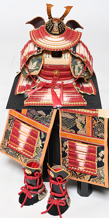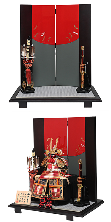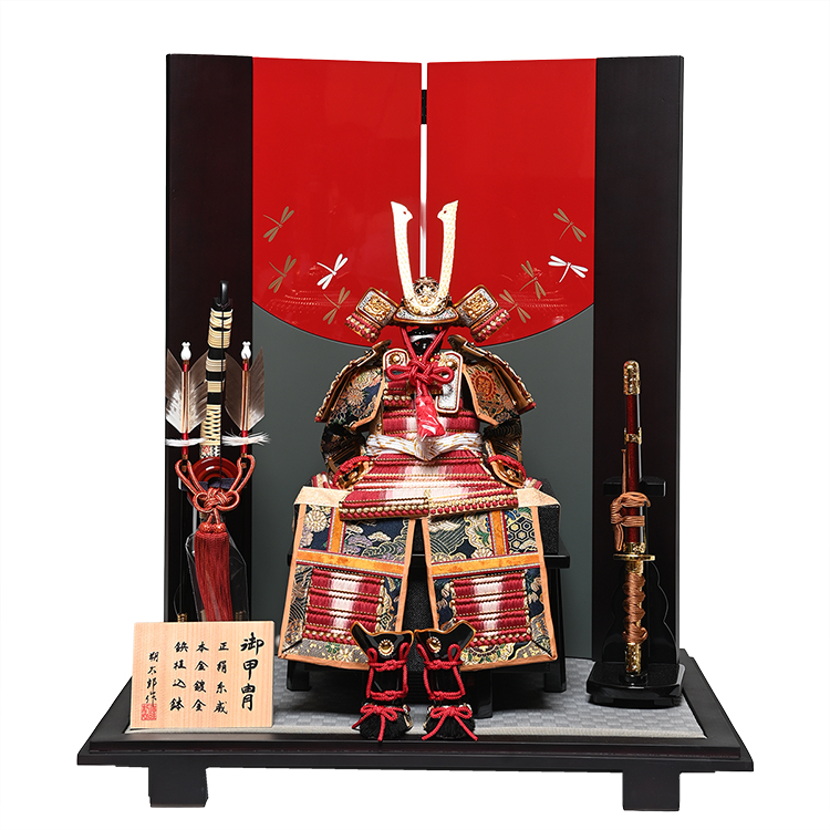 人形の伏見屋 > 五月人形 > 鎧平飾り > 5号長鍬形茜糸沢瀉威蜻蛉屏風床飾:朝比奈朔太郎作