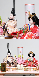 に、春めいた色目のお雛様に、灯り付き油灯・アレンジ桜橘・菱三宝とニュースタイルデザイン