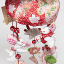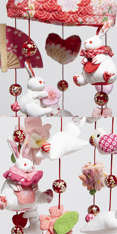 (兎の眼の赤いのは魔除け、また前にしか進まず躍進を願い)・花等20種のつるしを飾りました。