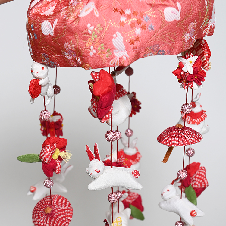 人形の伏見屋 > 雛人形 > つるし雛 > うさぎと花のつるし飾 六角漆黒塗バックケース飾