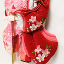 『有松絞に桜刺繍/ベルベットに刺繍押絵振袖羽子板』
