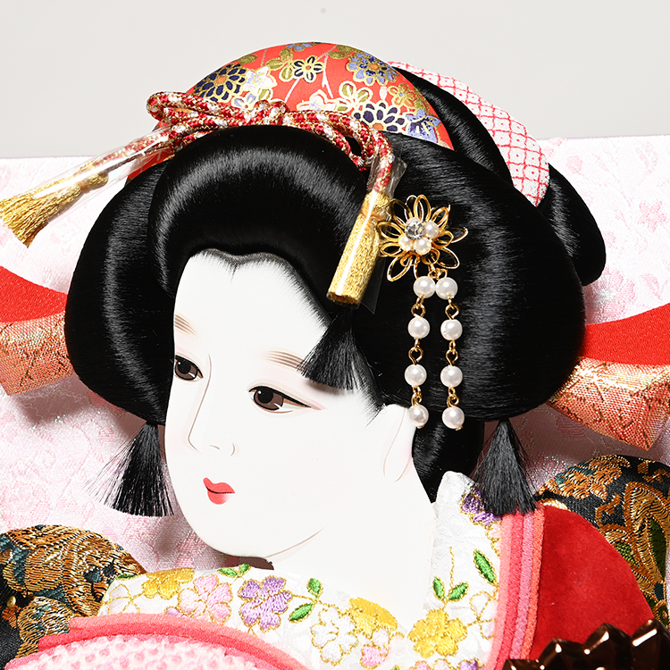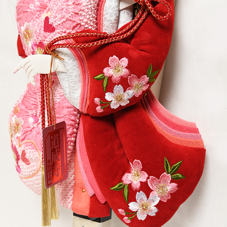 人形の伏見屋 > 羽子板・破魔弓 > 羽子板 > 17号道成寺有松絞桜刺繍/別珍桜刺繍振袖押絵羽子板::タモ材金背景ケース;伏見屋監修