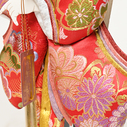紀州道成寺で鐘供養が行われる日に現れた白拍子・花子が、次々と踊りを見せるうちに大蛇となって鐘に飛び込み、過去の安珍清姫伝説の清姫の怨霊であることを明かす物語を羽子板にし上げました。